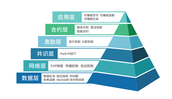 共识层采用PoS 与PBFT相结合的混合共识机制,出块时间短,效率高。以 PoS 为基础,PBFT提高效率的同时也可以有效防止硬分叉,保证主链的安全。