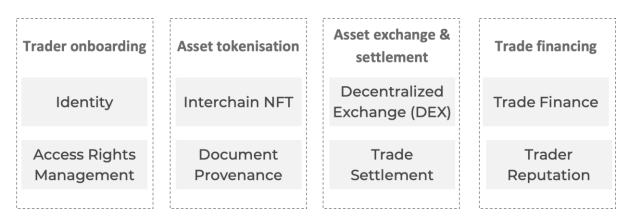 SDK正在不断扩展,以满足进入Persistence生态系统的新型用例和dApp的需求。然而,通过现有的模块,可以覆盖端到端的贸易和贸易融资历程: