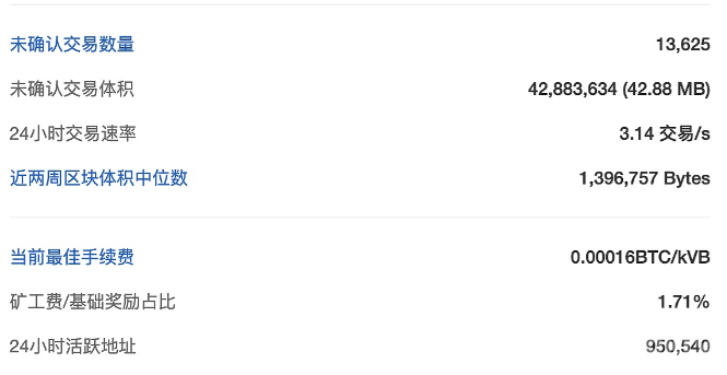 据BTC.com数据,比特币挖矿难度达32.05T,创历史新高。目前全网算力为233.71 EH/s,24小时交易速率为3.14交易/s。预测下次难度上调0.08%至32.07T,距离调整还剩13天15小时。