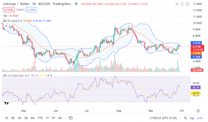 UNI 价格以 16.80 美元的价格进入 2022 年,而数字资产开始加速发展。到 1 月 8 日,它被推至 14.49 美元。虽然这一数字在一周内上涨至 18.18 美元,但这种上涨是短暂的,因为到 1 月 24 日价格跌至 9.60 美元。 在 2 月 19 日之前徘徊在 10.91 美元的阻力位附近之后,UNI 在 2 月 24 日看到了 7.48 美元的季度低点。在经历了动荡的几周之后,山寨币的季度交易价格为 12.37 美元。 就像任何其他加密货币和更广泛的市场一样,第二季度对于 Defi 代币来说是残酷的。在第二季度损失了超过 57% 的利润之后。山寨币目前以 6.29 美元易手。下面的日线图更好地说明了 Uniswap 的波动水平和投资者的利益。