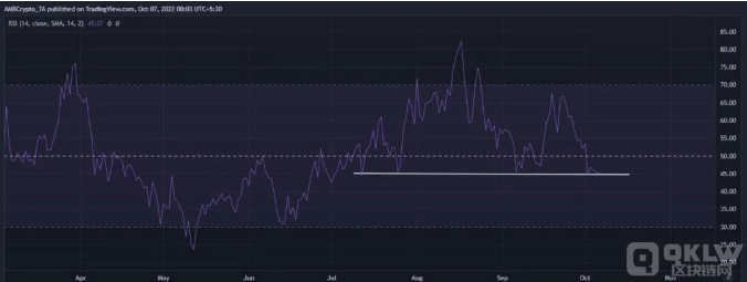 斐波那契线增加了在当前范围内看涨枢轴的可能性。过去两周的下行也导致RSI跌破50%。