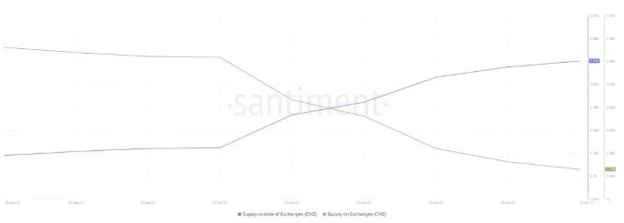 外汇供应流量观察意味着净流出量较高。换句话说,购买的 CHZ 多于出售的加密货币数量。