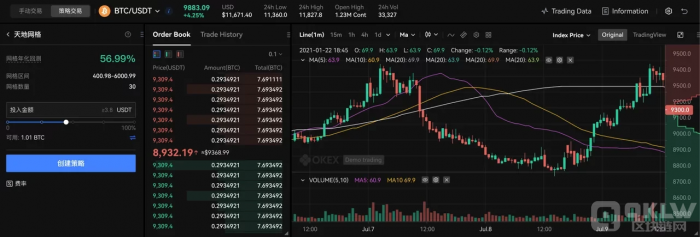 天地网格适用于区间震荡行情和震荡上涨行情,遇到震荡下跌行情,可能出现亏损;天地网格价格波动区间更大,没有止盈止损,适合中长线投资。天地网格目前只支持现货交易。