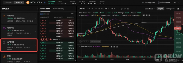 1)打开欧易官网,点击【交易】-【策略交易】,点击【现货网格】,进入【策略选择】页面,在列表中选择【天地网格】。填入【投入金额】,点击【创建策略】。