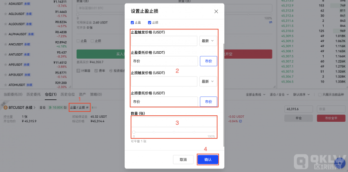 1.交易页面设置止盈止损
