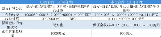 假设BTC价格下跌10%(10000美元下跌至9000美元),收益对比如下: