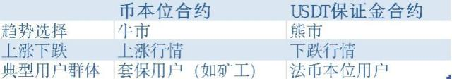 对于币本位合约,典型用户群体为套保用户,如矿工,其特点为需长期持续持有某个币种;对于USDT保证金合约,典型用户群体为法币本位用户,符合该类用户对于低交易成本、计算简单的要求。