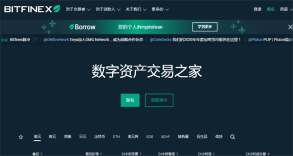 支持以太坊、比特币、莱特币、以太经典等虚拟币的交易,每天的成交量达30多亿人民币。提供币币交易,美元与币的交易。注册非常简单。2016年,Bitfinex大概有12万枚比特币通过社交媒体被盗。受此事件影响,当时比特币价格跌了20%。