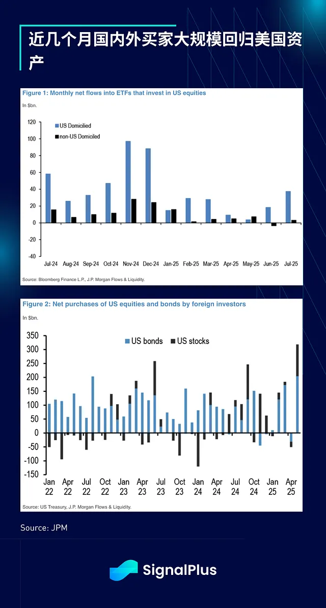 美国资本流动依然强劲,国内外投资者大规模回归。最新资料显示,净购买量创下月度流入新纪录,交易量也突破新高,形成正面印证。