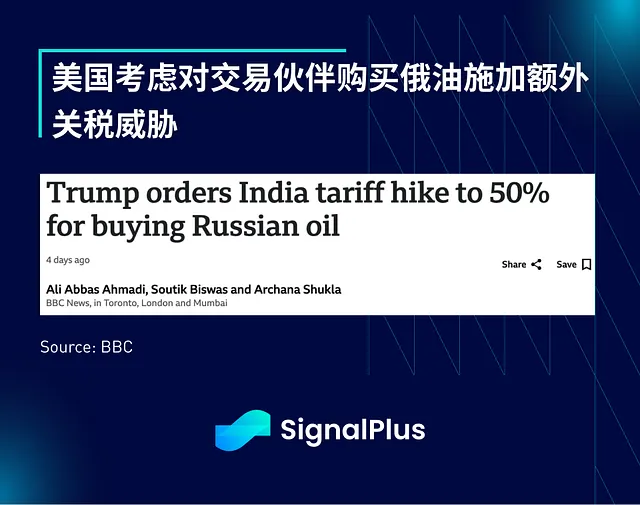 另一方面,本周美中贸易休战协定即将到期,部分市场参与者预期截止日期会再次延长,但也有人担心美国可能会因为中国购买俄罗斯石油而征收新关税——此前印度因同样行为已被制裁。