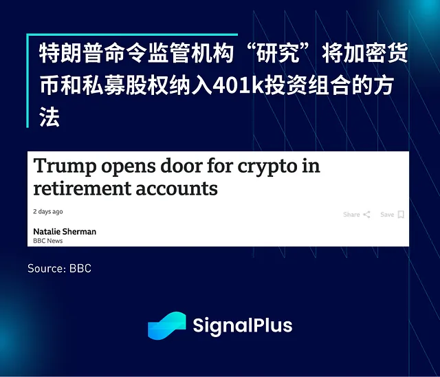 加密货币本周也经历了类似的反弹,主要受特朗普命令监管机构研究将加密货币(和私募股权)纳入 401k 投资组合可能性的头条声明推动。如果此举成真,显然将打开巨大的购买需求。不过,距离其可能成为法律还有很长的路要走。