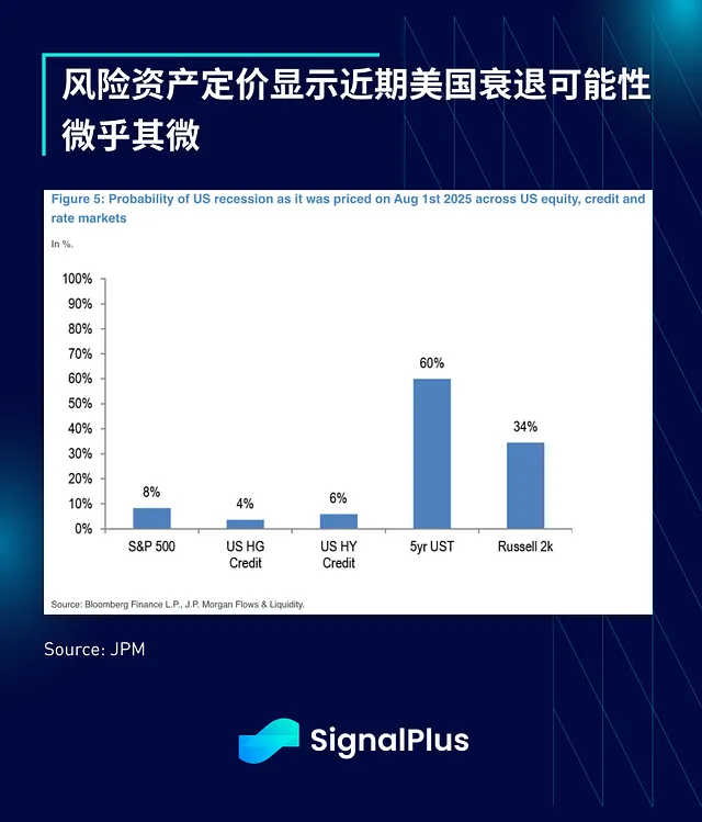 当前的反弹已将股市和信贷市场对经济衰退的预期概率推回至个位数低位。美国固定收益市场则(如往常一样)是个例外,它们对美联储进一步宽松的定价仍然最为激进。