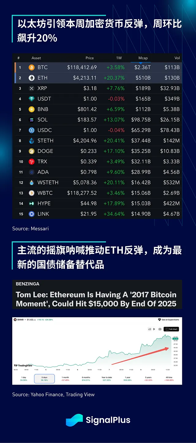 更令人兴奋的是,以太坊引领了本周的上涨,周涨幅达+20%。最新的主流专家/跟风者将 ETH 吹捧为公开股权领域最新的 FOMO(错失恐惧症)标的。散户交易者积极回应,推动 BNMR 本周上涨近 60%,向原生赌徒展示了在受监管世界如何正确地进行 FOMO。