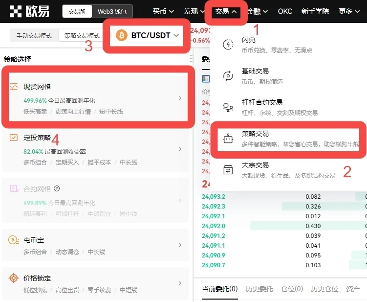 目前欧易已提供现货网格和合约网格的策略产品,您可了解详情并尝试使用策略。