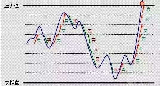 所谓网格交易法(grid trading method),也称鱼网交易网,秉持的原则是“仓位策略比择时策略更重要 ” 。其基本操作方式就是以某点为基点,每上涨或下跌一定点数挂一定数量空单(卖出)或多单(买入),当价格朝期望方向进展时获利平仓,并在原点位挂同样的买单或卖单。这样布下的这些交易单形成了一张像鱼网样的阵列,在震荡的市场中来回获利。