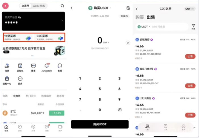 当完成4项准备条件,就可以开始申请成为商家,操作过程如下: 打开欧易官网首页,点击【买币】—【C2C买币】;在新页面点击【更多】—【商家计划】—【立即申请】。