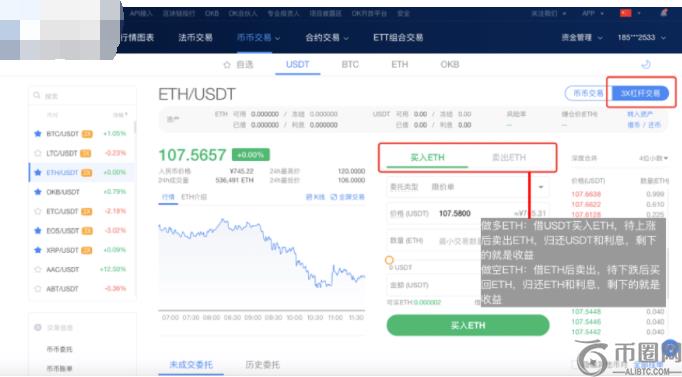 恭喜,您已经开始货币对货币的杠杆交易。 当货币对进行交易时,买入或卖出的资产数量将增加相应的倍数。交易示例:1、做多ETH:借USDT买入ETH,上涨后卖出ETH,返还USDT和利息,剩下的就是收益。2、做空ETH:借入ETH卖出,下跌时买回ETH,返还ETH和利息,剩下的就是收益。
