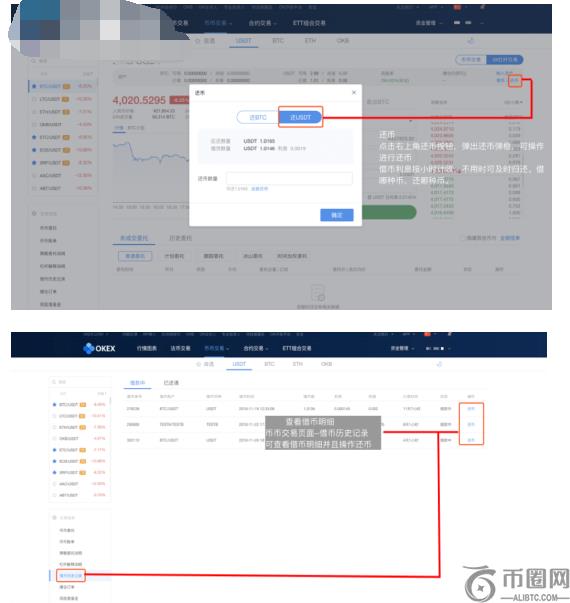借币利息按小时计收,不用时可及时归还。借哪种币,还哪种币。选择已有借币账户,右侧点击“还币”,填写还币数量后确定即归还。