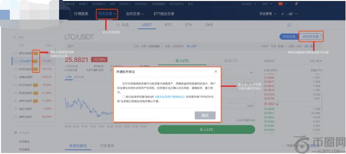 1.打开okex交易所官网,首次进入杠杆交易、需勾选开通杠杆协议
